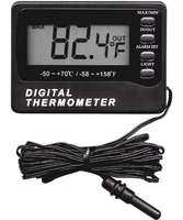 Our waterproof bath thermometer. will allow you to monitor the temperature of your Energy Bath. For those with standard bathtubs,. after bringing the bath water to the suggested temperature, you will notice the water cooling after about 10 - 15 minutes. At this time you can let out. about one inch of water, and then replace that amount with hot water. In this way you can maintain a constant temperature for the duration of your bath. A few important features:. High/low temperature alarm Jumbo digital display Fahrenheith/Centigrade switch Temperature range: 14� to 122�F Accuracy: _1.8�F Sampling rate: 10 second Cord length: 10 ft. Display size: 1.88� x 0.82� Dimensions: 2.87� x 2� x 0.6� Power source: 1 �AAA� battery Supplied With: Battery Suction cup Velcro mounting tape Note: Bath thermometer may. attached to the bath wall with the supplied suction cup, or velcro mounting tape. Or you can place it in a convenient place near the tub as you bath. |